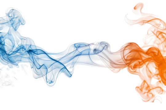 The blue and orange smoke is flowing together in a beautiful, swirling pattern