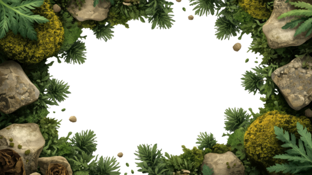 Lush Green Frame with Rocks and Moss Natural Border for Design Projects