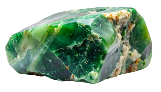 A close-up shot of a green gemstone on a white background, perfect for highlighting jewelry or gemstones in editorial and commercial use