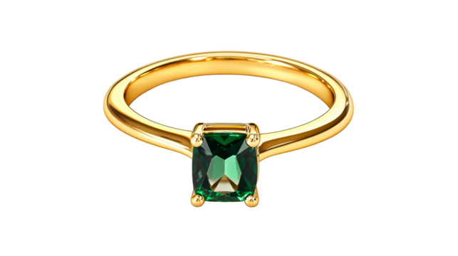 Elegant green gemstone ring with gold band and transparent background
