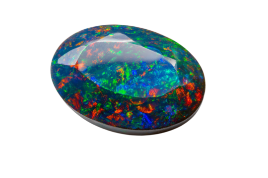 A blue and green gemstone with a red center