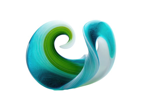 Abstract fluid sculpture with swirling turquoise, green, and white organic shapes