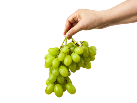 A bunch of fresh green grapes isolated on a plain white background ready to be eaten today