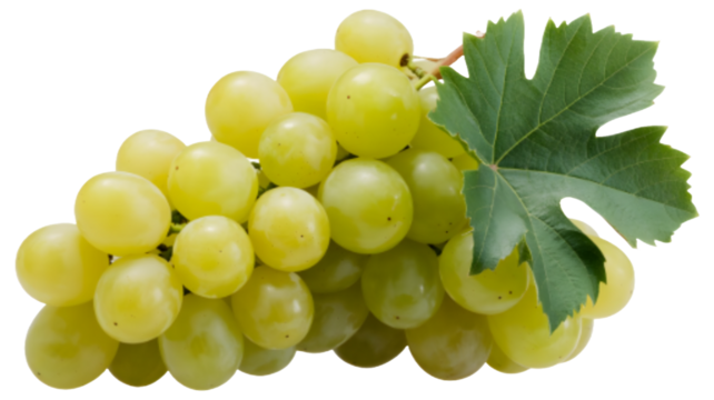 Small bunch of green grapes isolated on transparent background.