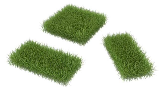 Green grass turf patches isolated on transparent background for landscaping