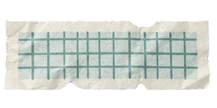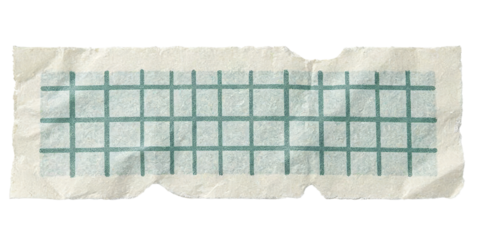 Ripped torn paper adhesive green grid pattern washi tape on transparent background