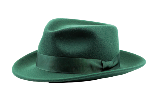 Stylish green hat adorned with a brown ribbon around the brim ideal for fashion and outdoor activities in various seasons white isolate background