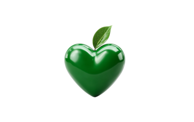 Expressive green heart emoji illustration with small leaf conveying sustainability, nature, and affection isolated on transparent background PNG