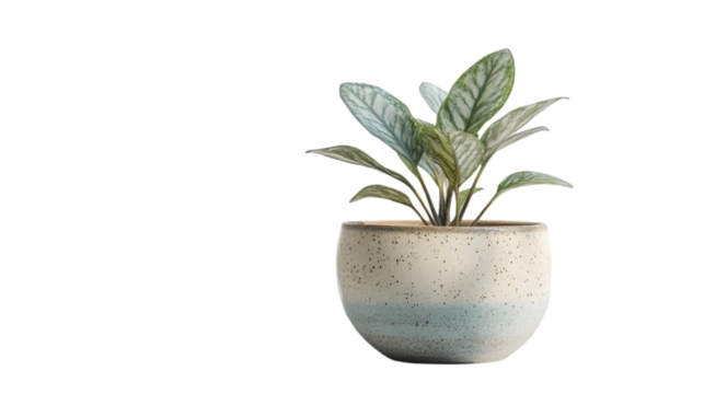 Potted Plant with Silver-Green Leaves in a Speckled Pot - Realistic Image