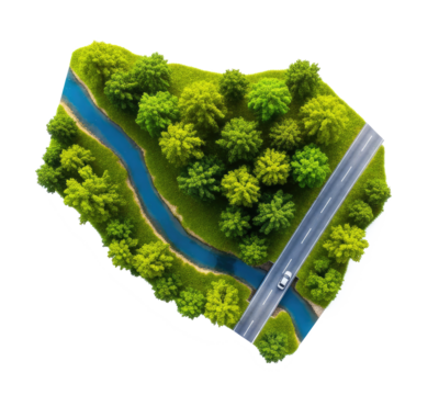 winding river gracefully meanders through vibrant green landscape isolated on white background