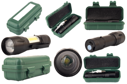 Ornate metal lanterns with glowing red and green glass panels isolated on a transparent background