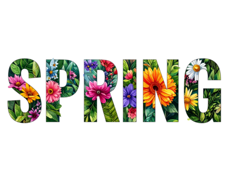 Untitled design - SPRING Text Filled With Colorful Flowers and Green Leaves, Botanical Typography, Transparent PNG (2)