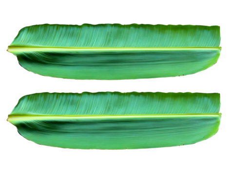 Floating green leaf with transparent background featuring curved vein stripes