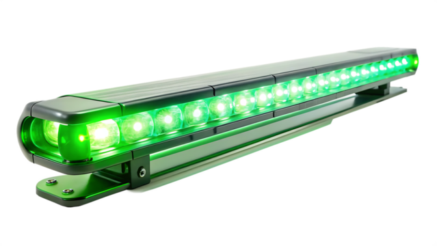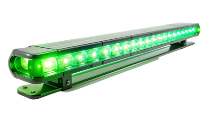 Green L E D light bar with multiple illuminated bulbs isolated on a transparent background