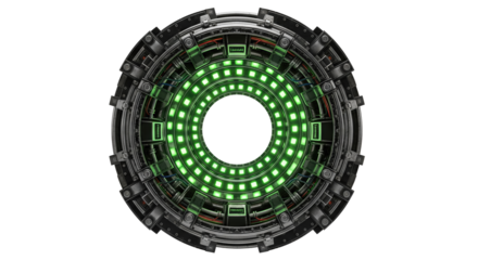 White rectangular box with green stripe and colorful led lights isolated on transparent background