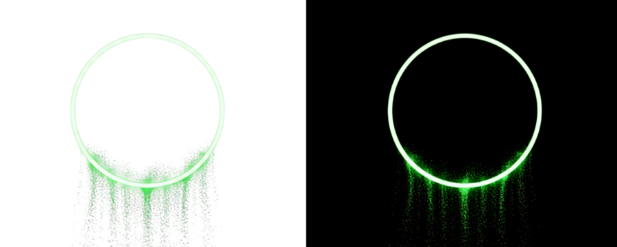 Abstract image featuring two glowing green neon circles on a transparent background.