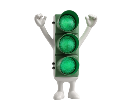 Green Light Go: A classic traffic light signal with red, yellow, and green lights, isolated against a white background, symbolizing a fresh start, opportunity, and the go-ahead. It's a powerful visual