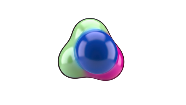 3D Abstract 3D amorphous blob with blue sphere on transparent background