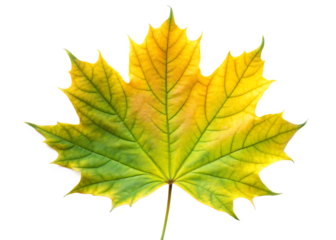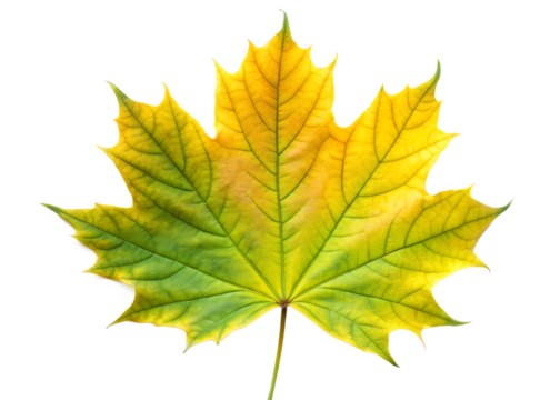 Vibrant maple leaf transitions from green to yellow against a black background