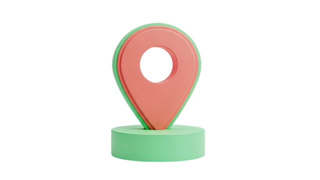 3D Map Pin Location Icon on a Green Stand on transparent background