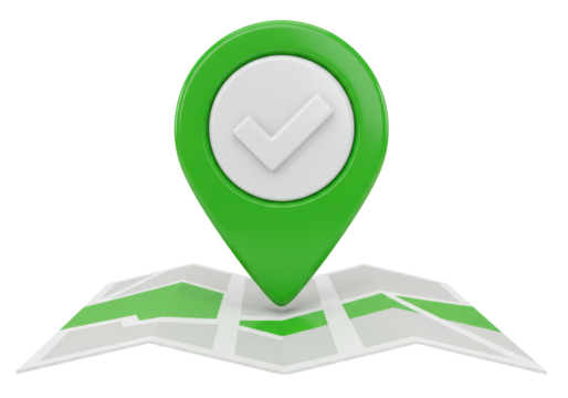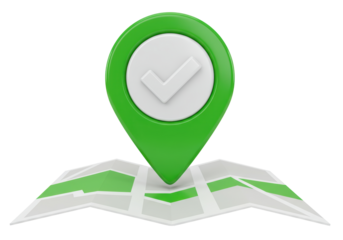 Isolated Green Map Pointer with Checkmark Location Confirmation