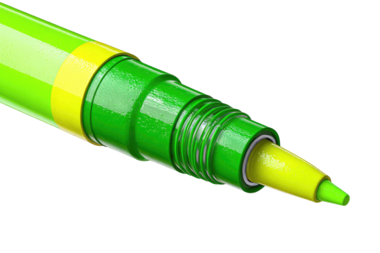 Green highlighter marker pen with black tip green marker isolated on a transparent background