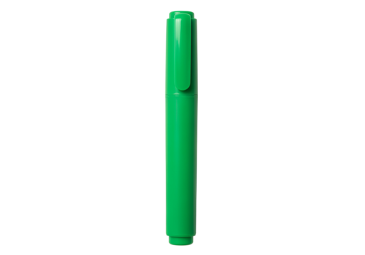 Green marker pen isolated on transparent background, writing instrument for office and school supplies