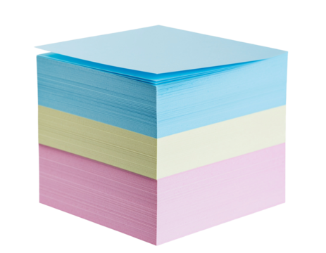 Cork board with colorful sticky notes and push pins isolated on transparent background