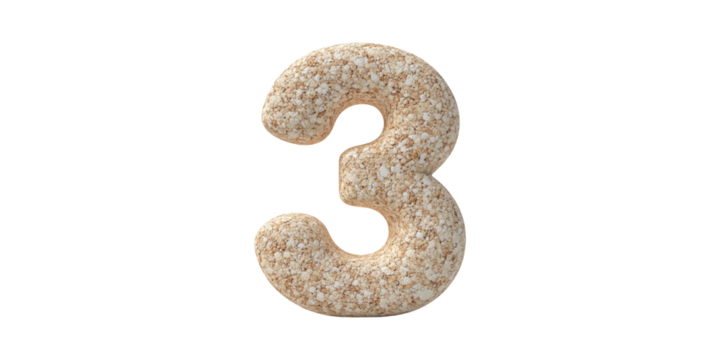 Textured Number Three In Cork Material. Eco-Friendly Design And Sustainability Concept Isolated On Transparent Background