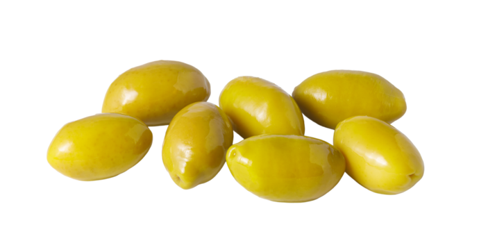 Collection of Various Green Olives Displayed on transparent Background Featuring Distinct Shapes and Sizes Ideal for Culinary or Design Use