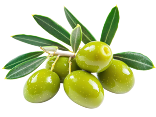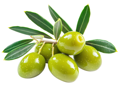 PNG Fresh green olives with leaves on a branch: vibrant mediterranean fruit