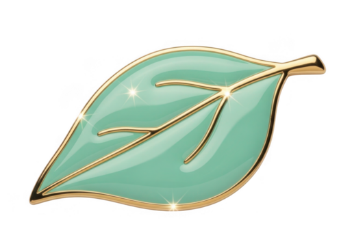 Elegant mint green leaf brooch isolated on transparent background for fashion and jewelry design