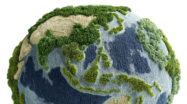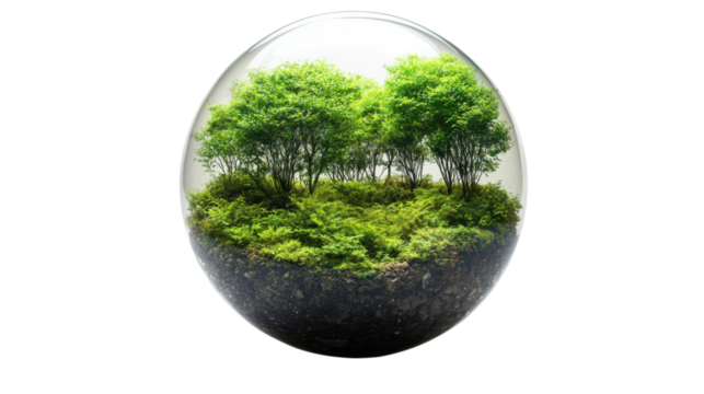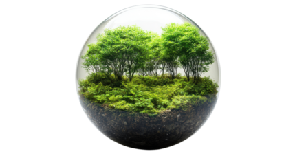 Green globe on transparent background illustrating planet and environment theme