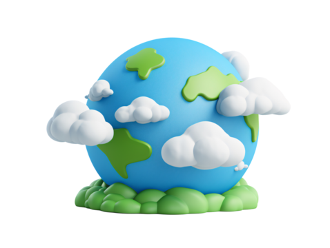 Minimal abstract globe illustration on transparent background