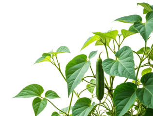 green plant with leaves and a long green pod isolated on transparent background