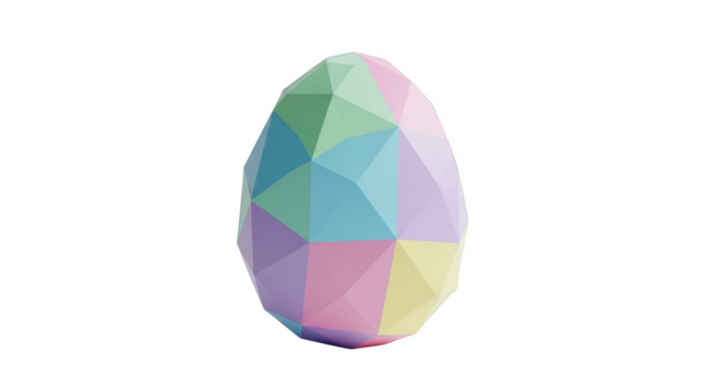 Low poly Easter egg geometric pastel colors pink purple blue green yellow on black background image
