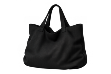 Black reusable canvas tote bag for shopping and everyday essentials, a sustainable fashion accessory mockup on transparent background