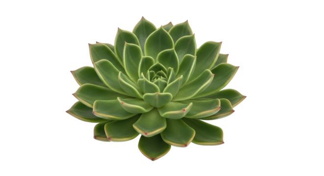 echeveria succulent with symmetrical rosette form, lush green leaves, isolated on white background