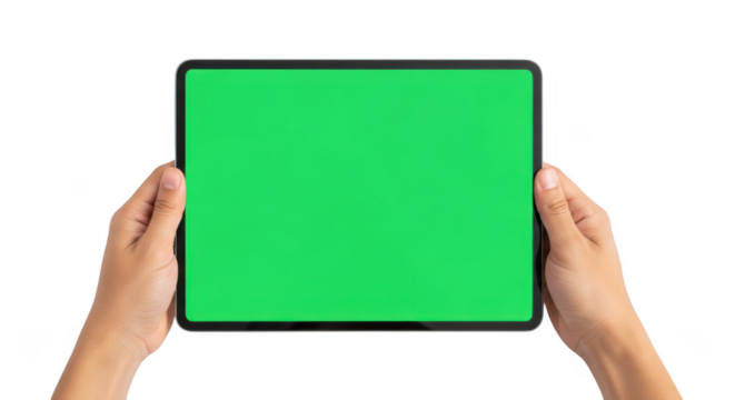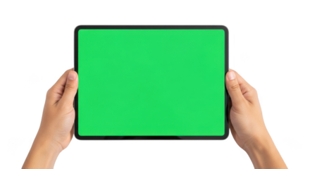 Modern tablet with a vibrant green screen isolated on a clean white background perfect for digital mockups and presentations.