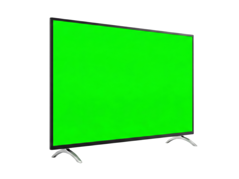 Modern Flat Screen Television with Green Screen Background Isolated on White