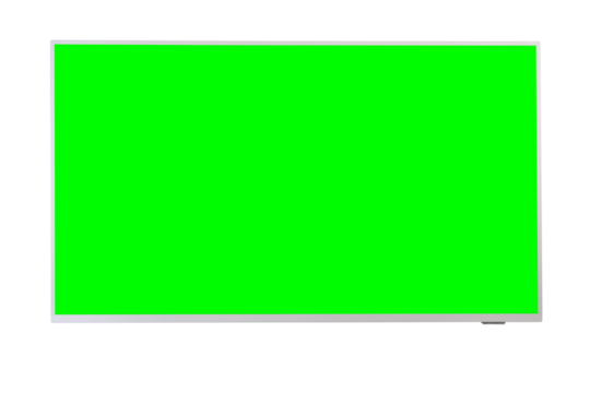 Large green screen LED TV on a white background.