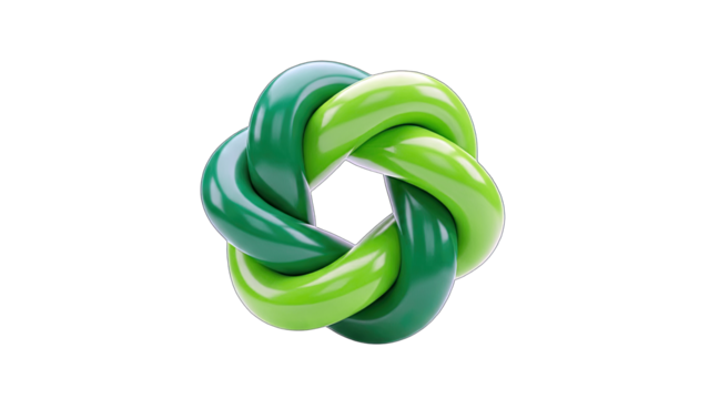 Intertwined Green Shapes on White Background