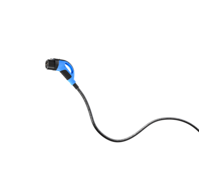 Isolated electric car charging station with green light, yellow cable and screen showing time