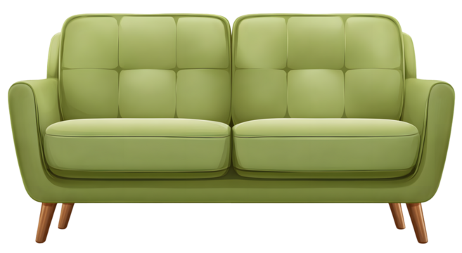 Elegant green sofa design for stylish living room home inspiration modern aesthetic isolated on transparent background
