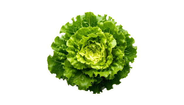 Overhead view of a vibrant, leafy green lettuce head against a stark black background