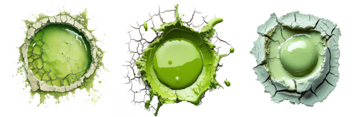 Green Bubbeling Puddle Surrounded By Cracks, Isolate Images White Background