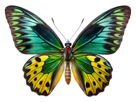 Close-up of a Pale Green Butterfly with Dark Spots, Isolated on White Background