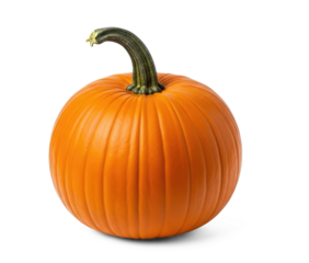 A single orange pumpkin with a green stem on a png transparent