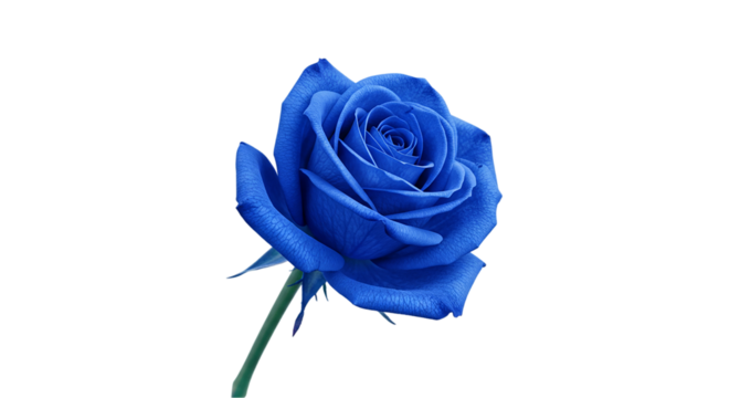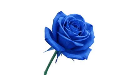 A single blue rose with a green stem isolated on a black background in a close up studio shot