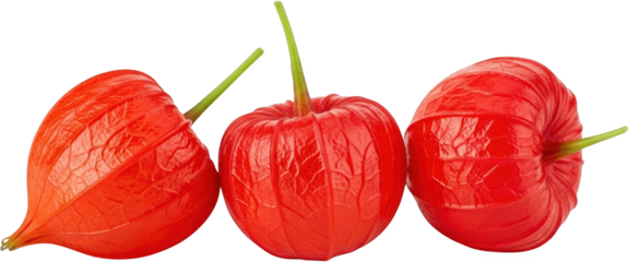 Group of vibrant orange poppies blooming on green stems isolated on transparent background